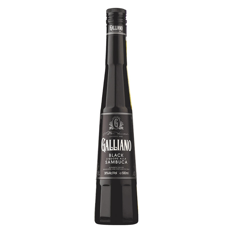 Galliano Sambuca Black is a deep 'Liquore alla Sambuca'. The delicate liqueur gets its colour from blending the original recipe with elderberries, turning the Sambuca liqueur a deep blue almost inky black shade. Quite unusual. A balanced aniseed taste gets a deep spicy berry finish.